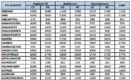 3) The Highest Addition & Liquidation in CE OI denotes whether the stock can witness buying or see selling.