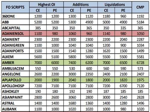 3) The Highest Addition & Liquidation in CE OI denotes whether the stock can witness buying or see selling.