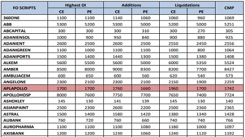 3) The Highest Addition & Liquidation in CE OI denotes whether the stock can witness buying or see selling.