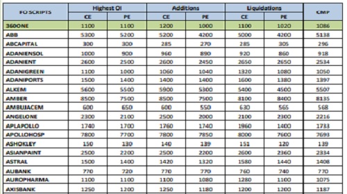 3) The Highest Addition & Liquidation in CE OI denotes whether the stock can witness buying or see selling.