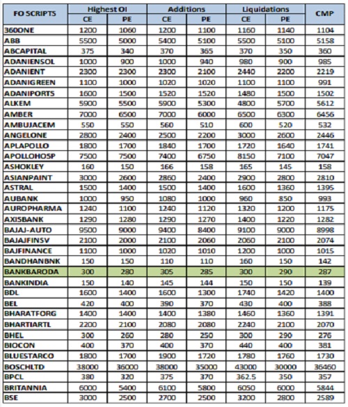 3) The Highest Addition & Liquidation in CE OI denotes whether the stock can witness buying or see selling.