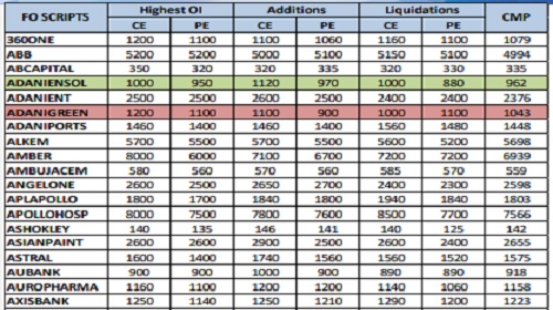3) The Highest Addition & Liquidation in CE OI denotes whether the stock can witness buying or see selling.