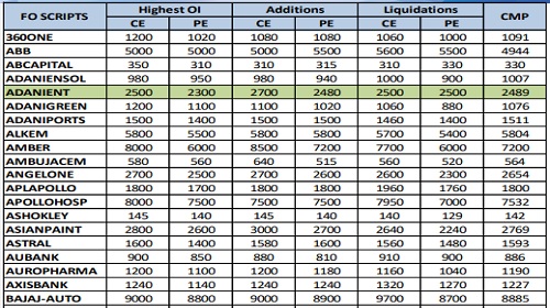 3) The Highest Addition & Liquidation in CE OI denotes whether the stock can witness buying or see selling.
