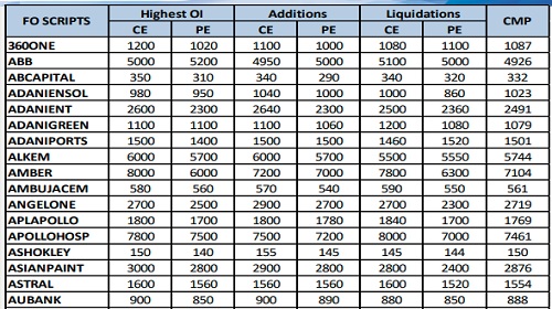 3) The Highest Addition & Liquidation in CE OI denotes whether the stock can witness buying or see selling.