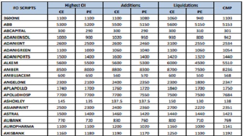 3) The Highest Addition & Liquidation in CE OI denotes whether the stock can witness buying or see selling.