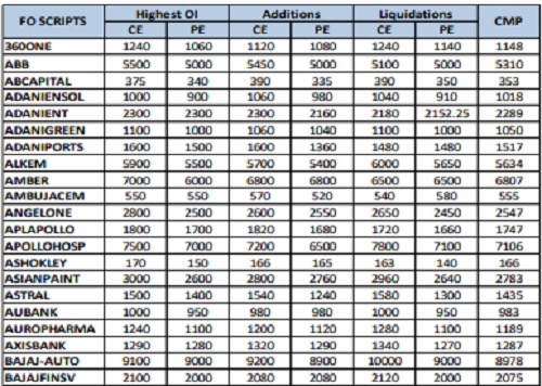 3) The Highest Addition & Liquidation in CE OI denotes whether the stock can witness buying or see selling.