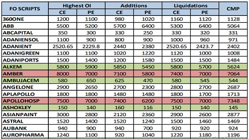 3) The Highest Addition & Liquidation in CE OI denotes whether the stock can witness buying or see selling.
