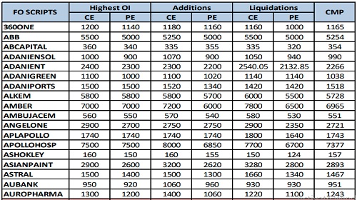 3) The Highest Addition & Liquidation in CE OI denotes whether the stock can witness buying or see selling.