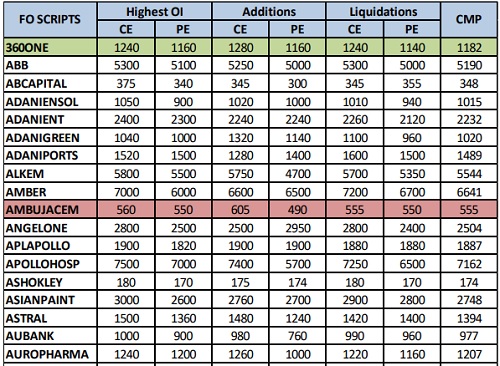 3) The Highest Addition & Liquidation in CE OI denotes whether the stock can witness buying or see selling.