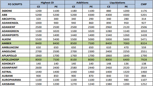 3) The Highest Addition & Liquidation in CE OI denotes whether the stock can witness buying or see selling.