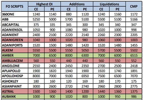 3) The Highest Addition & Liquidation in CE OI denotes whether the stock can witness buying or see selling.