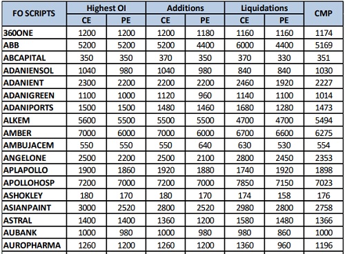 3) The Highest Addition & Liquidation in CE OI denotes whether the stock can witness buying or see selling.