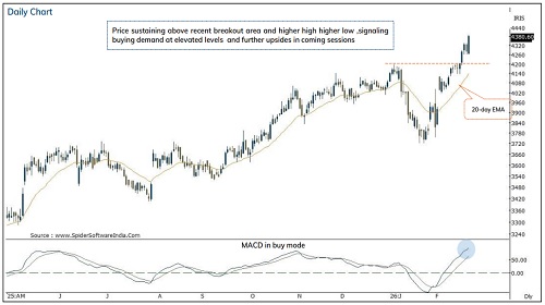 Buy Larsen & Toubro Ltd @ 4374-4378 Target 4421.90 Stop Loss 4352.10