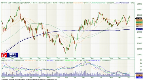Resistance : 25300 (Pivot Level) and 25500 (Key Resistance)