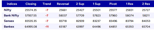 Nifty / BankNifty / Sensex / Bankex - Daily Technical Levels