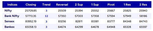 Nifty / BankNifty / Sensex / Bankex - Daily Technical Levels