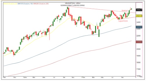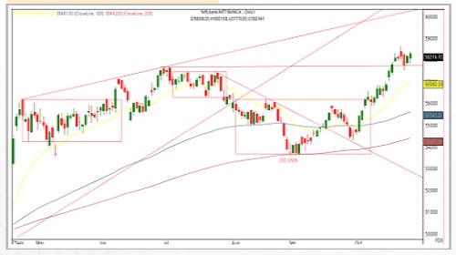 * With the exception of ICICI Bank and Axis Bank, most constituents supported the upward movement, led by IndusInd Bank and AU Bank.