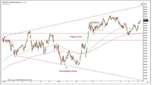 * Technically, the index faces immediate resistance near 55,200, while robust support is positioned around the 54,000 level.