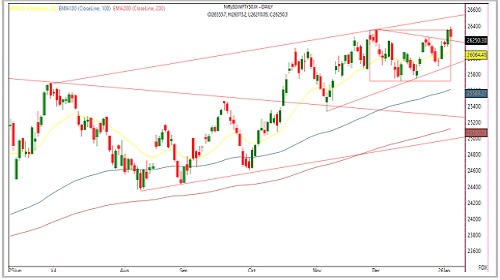 * The immediate support zone for the Nifty is placed around 26,000–26,200, while the upside potential towards the 26,500–26,700 zone remains intact in the near term.