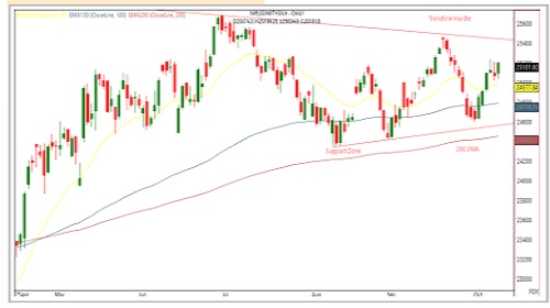 * However, a decisive breakout above 25,200 would confirm the move, with upside targets seen at 25,400 and 25,650 levels.