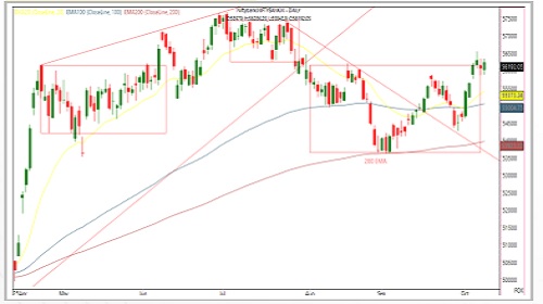 * From a technical perspective, the index faces immediate resistance near 56,800, with strong support established around the 55,500 level.