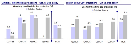 Key takeaways: With a 125bp repo rate cut already done in CY25, we anticipate another 25bp rate cut in Feb’26. The primary reason for this anticipation is the benign inflation trajectory for the next one year. The RBI reduced the FY26 inflation forecast to 2.0% from 2.6% earlier. We see downside risk to this forecast. On growth, the RBI upped its FY26 forecast to 7.3% by 50bp. We believe the central bank would be surprised positively here as well, with 3QFY26 beating the RBI expectation of 7%, due to the festive-driven pickup. While low inflation and high growth do provide a Goldilocks environment, extremely low inflation (sub-2%, as the Governor pointed out) is unhealthy for an economy that aspires to grow by 7% or higher. On the liquidity front, the RBI has surprised the market with a durable liquidity injection of INR1.5t (OMOs: INR1t; FX swap: INR500b) in Dec’25 alone. We anticipate additional announcements of OMOs and FX swaps in Feb’26, especially as depreciation pressure on the USDINR is likely to lead to a drawdown on dollar reserves.