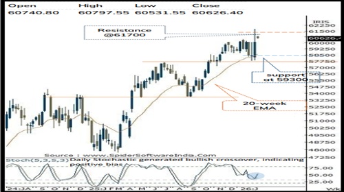 • Index extended the breather for second consecutive session and holding above gap support area (60495-60150), indicating healthy consolidation. The index continues to trade decisively above its key moving averages and has sustained above the physiological level of 60,000 mark. This structural strength reinforces our bullish bias and supports maintaining a positive outlook going forward. We expect Index to gradually resolve higher and challenge its prior swing high of 61700 levels in coming weeks.