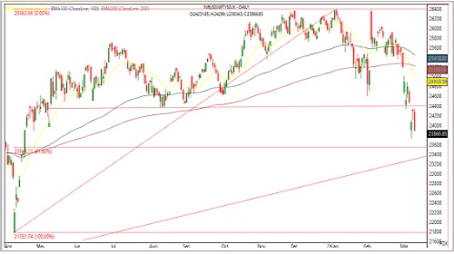 * On the upside, any recovery towards the 24,100–24,300 band is likely to face strong resistance.