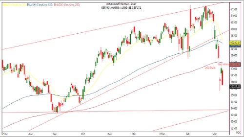 * Nifty plunged sharply on Wednesday, losing over one and a half percent and resuming their corrective phase amid weak global cues and heightened geopolitical tensions.