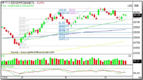 * On technical grounds, Nifty has an immediate support at 26000. If Nifty closes below that, further downside can be expected towards 25930-25880 mark.