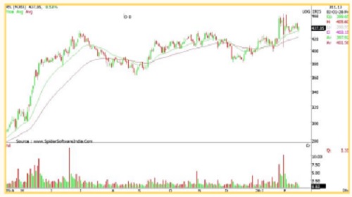 * On the technical front prices are traded with the higher lows structure with gradual increment in trading volume, indicating potential for the upwards journey towards recent swing high of 460 level.