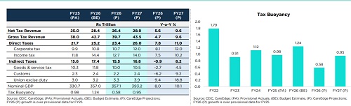 * Gross tax revenue is projected to improve in FY27, rising by 9.6%, marginally lower than the projected nominal GDP growth of 10.1%. We expected tax buoyancy at 0.95 in FY27.