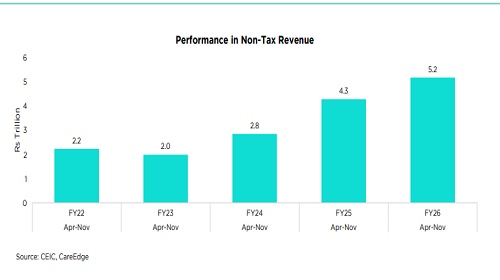 * While tax collections have shown a subdued performance in the current fiscal, the non-tax revenues have risen by a strong 20.9% during 8M FY26.