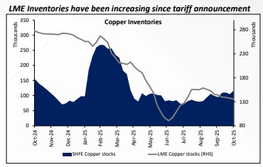 * ICSG indicated that global refined copper market posted an apparent surplus of 147,000 tons in the first eight months of 2025, down sharply from 477,000 tons a year earlier