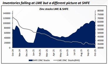 * A 6.3% increase in mined zinc output this year is reported, but refined production fell by over 2% due to bottlenecks at refineries, particularly in Kazakhstan and China