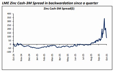 * LME Zinc Cash-3M flared out to $350 per mt this month, tightest since 1980, and continues to stay in backwardation, showing tight near term supply