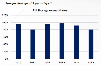 * Mild early-winter weather and high output are expected to lead to additional storage builds, reinforcing supply security