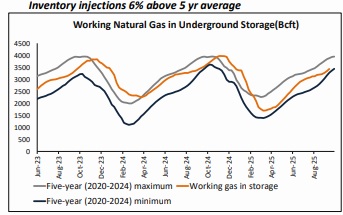 * Working gas inventories remain comfortably above the five-year average, providing a strong cushion against supply shocks this winter