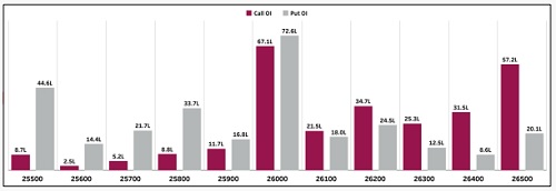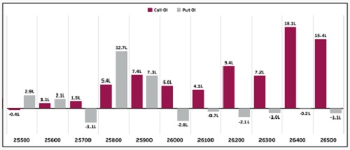 * Coming to puts, the 25,900 (7.3 Lc), 25,800 (12.7 Lc), and 25,500 strikes (2.9 Lc) saw considerable addition in open interest. There was notable Unwinding witnessed at 26,000 & 26,200 strike.