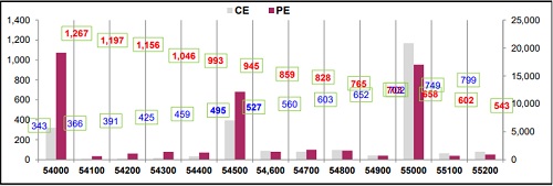 * The highest Open Interest on the Call side is observed at the 55,000 strike, followed by 54,500 which may act as resistance levels.