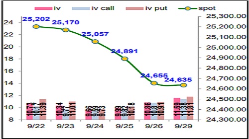 * The premium for the At-the-Money option is Rs. 303, indicating a likely trading range for the week between 24,200 and 25,000