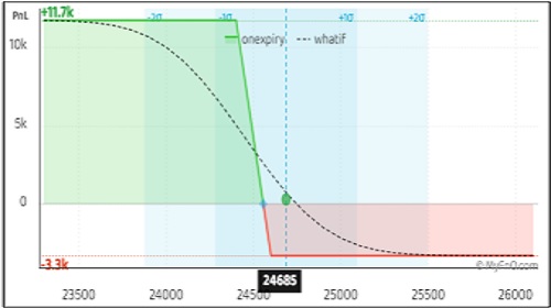 * Rationale: - Traders may consider deploying this spread strategy to achieve moderate returns while maintaining controlled risk and reward. The strategy involves buying one lot of the 24,400 strike Put Option and simultaneously selling one lot of the 24,200 strike Put Option.