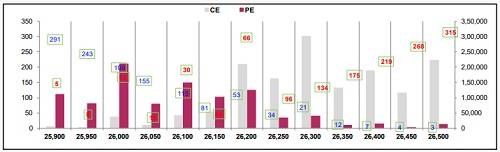 On the Put side, the highest Open Interest is at 26,000, followed by 26,100 which may serve as support levels.