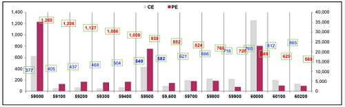 * The highest Open Interest on the Call side is observed at the 60,000 strike, followed by 59,000 which may act as resistance levels