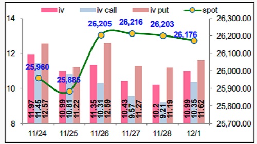 * The premium for the At-the-Money option is Rs. 280, indicating a likely trading range for the week between 25,900 and 26,500