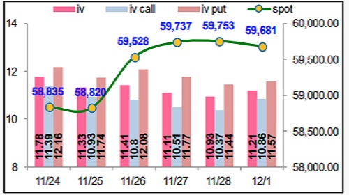 * The premium for the At-the-Money option stands at Rs. 1440, indicating a probable weekly trading range between 58,500 and 61,300.