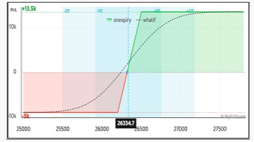 Rationale: Traders may consider deploying this spread strategy to achieve moderate returns while maintaining controlled risk and reward. The strategy involves buying one lot of the 26,200 strike Call Option and simultaneously selling one lot of the 26,500 strike Call Option.