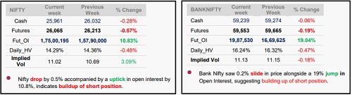 Nifty declined 0.5% while Open Interest rose 10.8%, indicating fresh short build-up and a cautious near-term market bias.