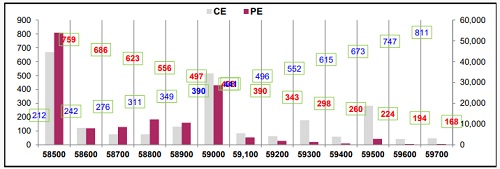 * The highest Open Interest on the Call side is observed at the 58,500 strike, followed by 59,000 which may act as resistance levels.