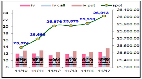 * The premium for the At-the-Money option is Rs. 343, indicating a likely trading range for the week between 25,600 and 26,400.